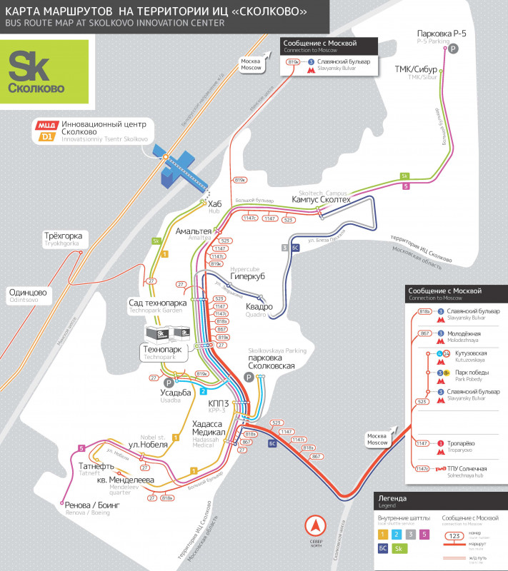 - Автобусы: Sk Express, 819К, 523 до остановки Технопарк Сколково.